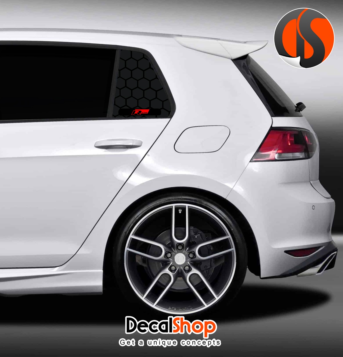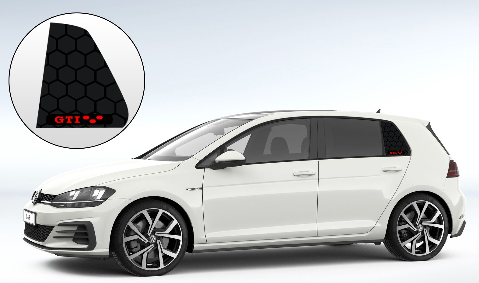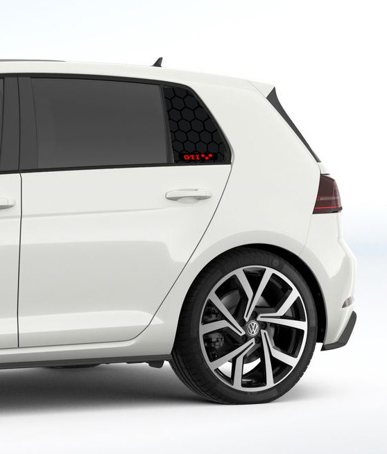 Donnez un style unique et sportif à votre Volkswagen Golf 7 grâce à notre kit de stickers hexagonaux spécialement conçus pour les vitres arrière (quarter window).